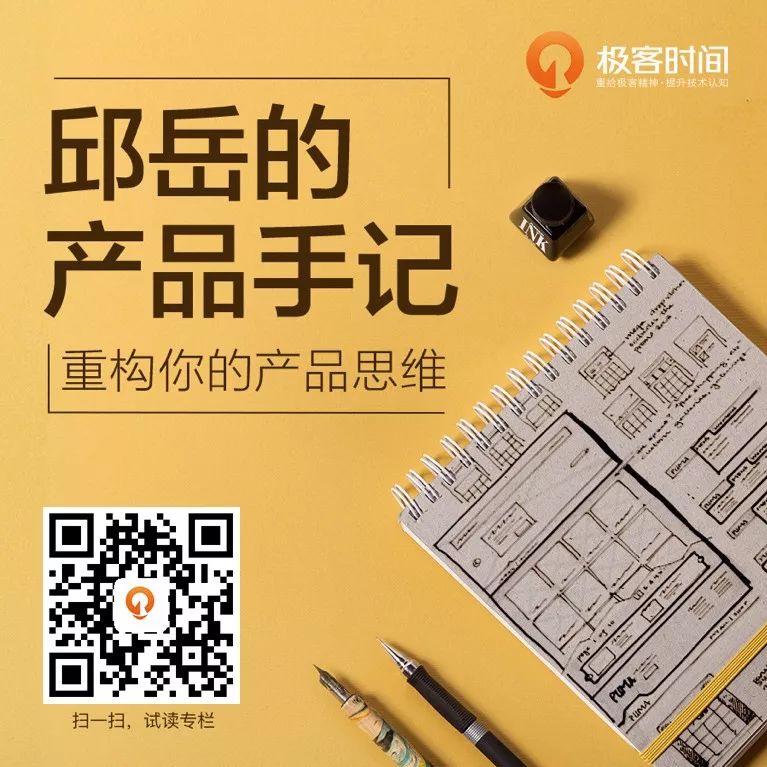 大概就是基于这样的经历,作为前资深技术人的池老,深知具备产品思维对技术人来说势在必行。于是,他策划的极客时间刚出专栏,就专门从冯大辉老师的无码科技借来资深产品经理邱岳,为技术人开设了一个产品专栏。他们希望这个专栏能够普及产品的基础知识、实战和思考。能够让技术人员跳出资深固有的思维框架,或者能够为有志于转型产品的技术人员获得成长。