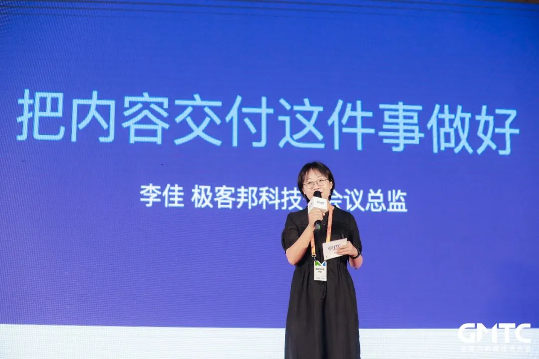 7 月 4 日上午 9:15,GMTC 全球大前端技术大会(北京站)2021 正式拉开帷幕。极客邦技术大会总监李佳以《把内容交付这件事做好》开场,传达了技术大会作为“教育产品”始终遵循内容第一的价值观。李佳表示“大会将以分享最佳案例及前沿技术为使命”,希望能够持续用优质的会议内容为参会者赋能。