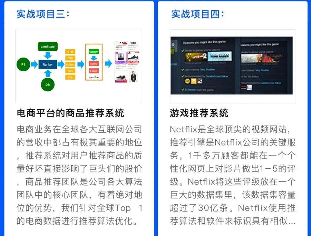课程的主要内容包括:歌单数据解析、Surprise库的使用、基于Surprise的矩阵分解实现、基于Tensorflow的矩阵分解实现、基于pyspark的协同过滤实现、基于协同过滤的推荐系统实现、歌曲序列建模、冷启动问题等。
