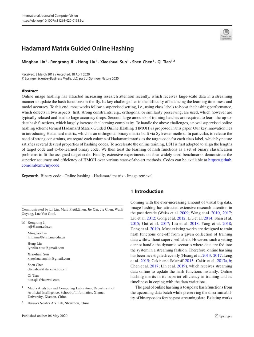 Hong Liu, Rongrong Ji*, Jingdong Wang, Chunhua Shen. 2018. Ordinal Constraint Binary Coding for Approximate Nearest Neighbor Search. IEEE Transactions on Pattern Analysis and Machine Intelligence (T-PAMI)