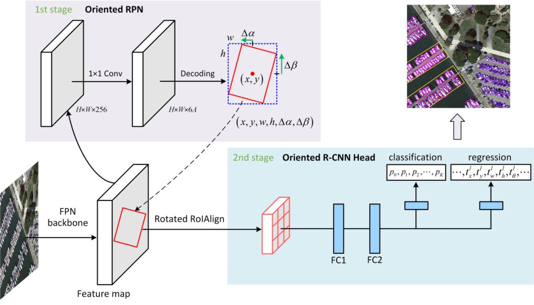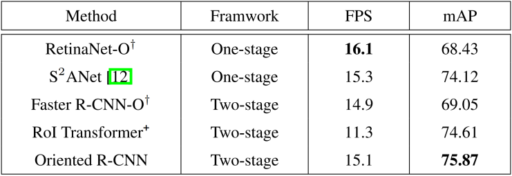 [1] Ross Girshick. Fast R-CNN. In Proceedings of the IEEE International Conference on Computer Vision, pages 1440-1448, 2015.[2] Shaoqing Ren, Kaiming He, Ross Girshick, and Jian Sun. Faster R-CNN: Towards real-time object detection with region proposal networks. IEEE Transactions on Pattern Analysis and Machine Intelligence, 39(6):1137-1149, 2016.[3] Jianqi Ma, Weiyuan Shao, Hao Ye, Li Wang, Hong Wang, Yingbin Zheng, and Xiangyang Xue. Arbitrary-oriented scene text detection via rotation proposals. IEEE Transactions on Multimedia, 20(11):3111-3122, 2018.[4] Jian Ding, Nan Xue, Yang Long, Gui-Song Xia, and Qikai Lu. Learning roi transformer for oriented object detection in aerial images. In Proceedings of the IEEE Conference on Computer Vision and Pattern Recognition, pages 2849-2858, 2019.[5]Gui-Song Xia, Xiang Bai, Jian Ding, Zhen Zhu, Serge Belongie, Jiebo Luo, Mihai Datcu, Marcello Pelillo, and Liangpei Zhang. DOTA: A large-scale dataset for object detection in aerial images. In Proceedings of the IEEE Conference on Computer Vision and Pattern Recognition, pages 3974-3983, 2018.