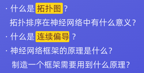 我们会基于昨天的功能,在此基础之上,学习拓扑图(topologicgraph),学习连续偏导(partialderivative),然后学习到网络如何传播,权重如何更新。
