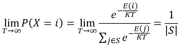 这表示,在温度无限大的情况下,所有状态的出现概率相同。