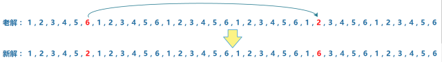 第2步,随机调换当前解 S1 的两个位置的数值,产生一个新解 S2 。