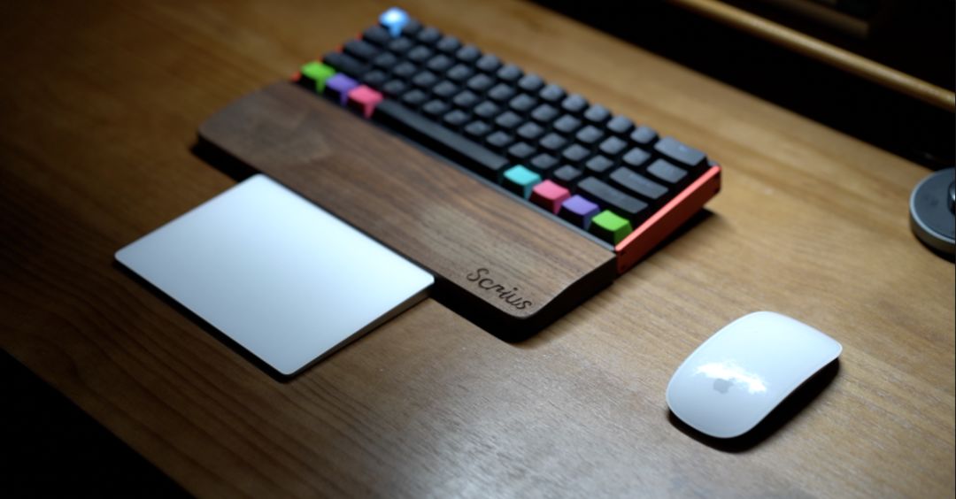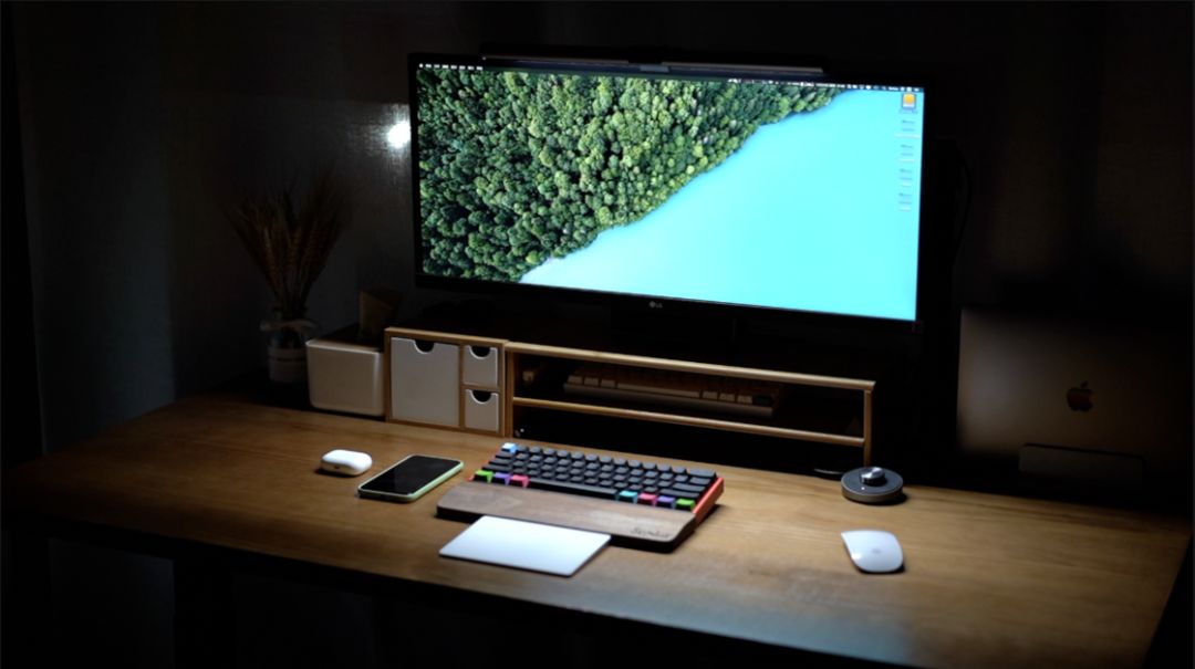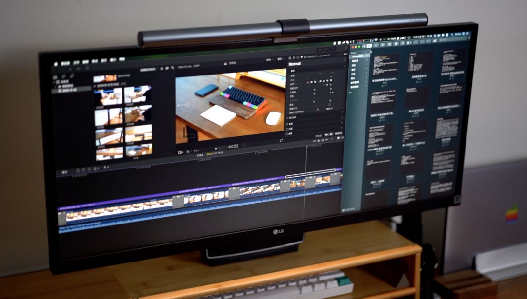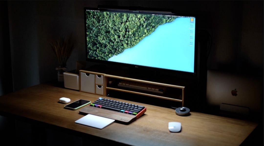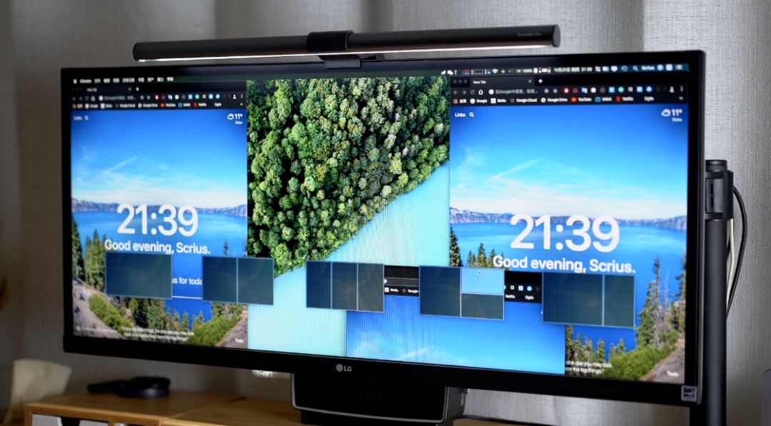 显示器还是 1.0 版本时的 LG 29WK600,搭配了一个淘宝 99 包邮的 L 型显示器支架。这款显示器的素质比较一般,2K 分辨率,色彩也很普通,但是我依然非常喜欢它,主要原因是我放不下它的 21:9 的比例。这是我目前最喜欢的显示器比例,通过 macOS 上的分屏软件 Window Tidy 搭配出不同的分屏方式,可以实现非常多场景下的操作,效率是真的高。