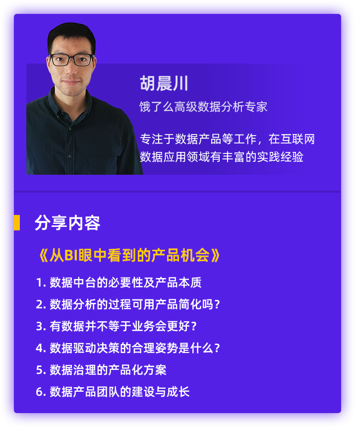 持续多年专注数据分析、数据产品、数据治理等工作,将自己的实践心得倾注于《数据化运营速成手册》一书的饿了么高级数据分析专家@胡晨川,将从数据的角度聊聊产品新机会。