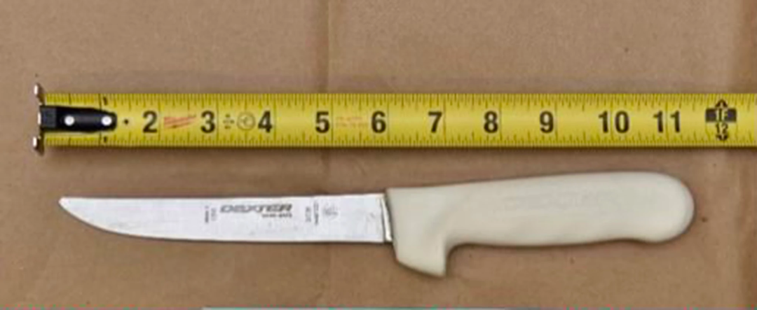 知情人士透露,凶器为一把6英寸长的白色手柄剔骨刀。