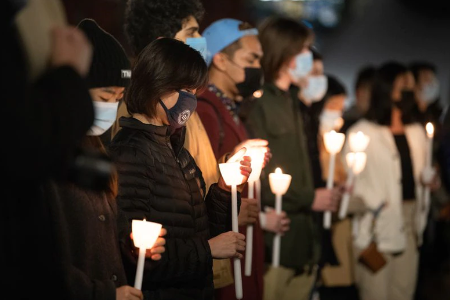 虽然正直深夜,依然有很多哥伦比亚大学的同学出席守夜活动,并为Davide Giri悼念。