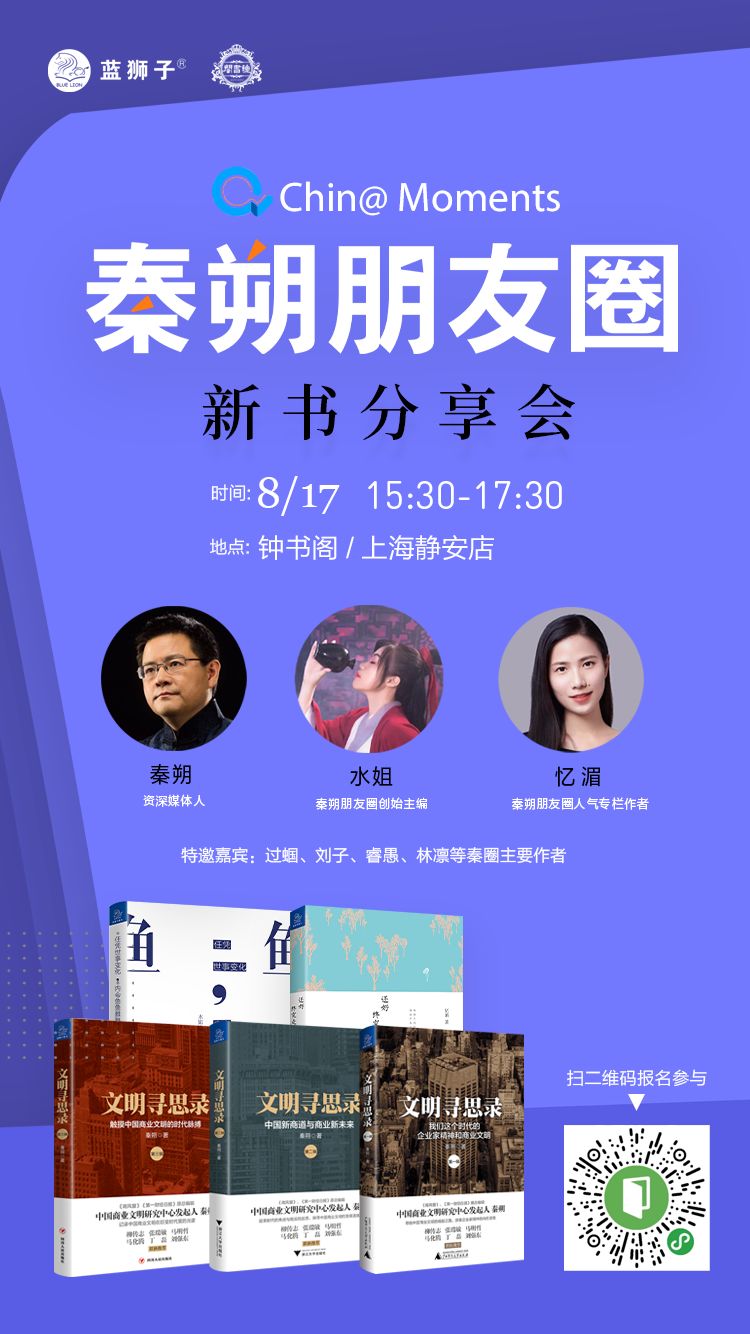 欢迎大家参加8月17日(这周六)下午秦朔朋友圈新书分享会。活动联系人水姐(yingdaughter)、段帅(duanyu_H)。