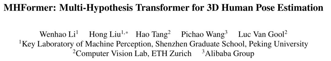 论文:MHFormer: Multi-Hypothesis Transformer for 3D Human Pose Estimation 单位:北京大学、苏黎世联邦理工学院、阿里巴巴 地址: https://arxiv.org/pdf/2111.12707.pdf 代码: https://github.com/Vegetebird/MHFormer