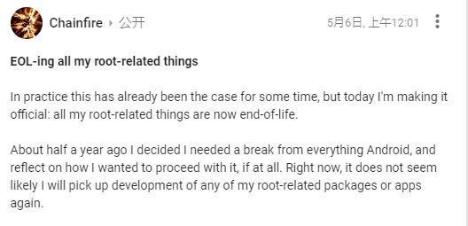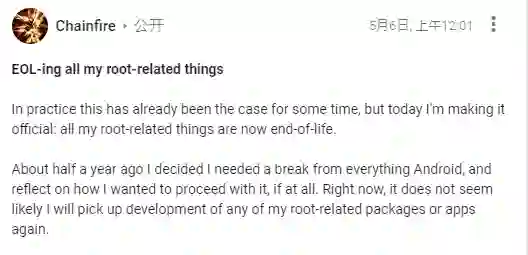 6、一个时代的落幕,Chainfire 宣布停止开发所有 Root 应用