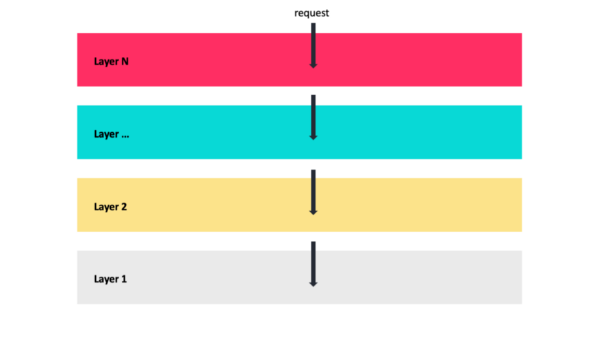 最后一个概念是,分层架构中的每一层都被标记为封闭或者开放。封闭层意味着请求从一层移到另一层,它必须通过它正下面的这一层才能达到下面这一层的再下一层。请求不能跳过任何层。