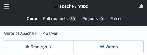 不要误解我的意思,我很喜欢 Vue —— 最近我使用它的频率远远超过了 React 的频率,但一个项目在 github 上的 star 数量更多的是衡量它的“流行”程度,而不是实际使用情况。下面举一个明显的例子,我们拿比较流行的 Apache 服务器 httpd 和一个相对来说意义没那么重大的 JavaScript 项目 colors.js 来对比: