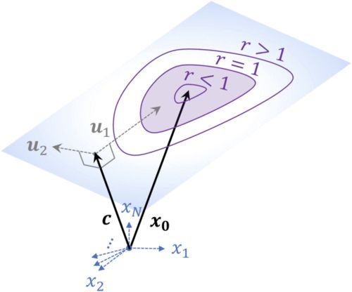2.论文其余部分是建立一个通用理论,告诉你哪种网络条件可以识别出流形,哪种则不能识别。比如,你什么时候能分辨出猫和狗,什么时候分不出来。论文中花了不少的篇幅来构建关于流形如何存在于子空间内的理论架构,如何用数学来描述(如下图)。