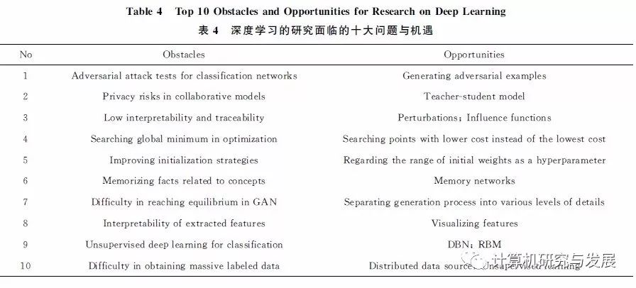 其次,归纳总结了深度学习发展面临的十大问题与机遇,在此基础上,首次归纳了深度学习应用于网络空间安全所面临的十大问题与机遇,并将十大问题与机遇归为3类:1)算法脆弱性问题,包括深度学习模型易受对抗攻击和隐私窃取攻击;2)序列化模型相关问题,包括程序语法分析、程序代码生成和序列建模长期依赖问题;3)算法性能问题,即可解释性和可追溯性问题、自适应性和自学习性问题、存在误报以及数据集不均衡的问题.