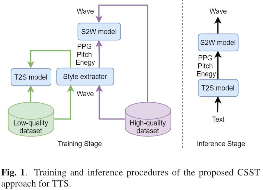 本文由腾讯AI Lab独立完成。文本到语音 (TTS) 合成中的跨说话人风格转移 (CSST) 旨在将说话风格转移到目标说话人的合成语音中。大多数以前的 CSST 方法都依赖于在训练期间携带所需说话风格的昂贵的高质量数据,并且需要参考话语来获得说话风格描述子作为新句子生成的条件。