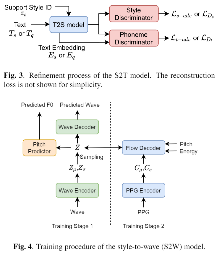 本文采用一种新的预训练-细化方法,仅使用易于得到的低质量数据来学习鲁棒的 T2S 模型。S2W 模型使用高质量的目标数据进行训练,用于有效聚合风格描述子并用目标说话人的音色生成高保真语音。实验结果表明,Referee 在 CSST 中优于基于GST的基线方法。