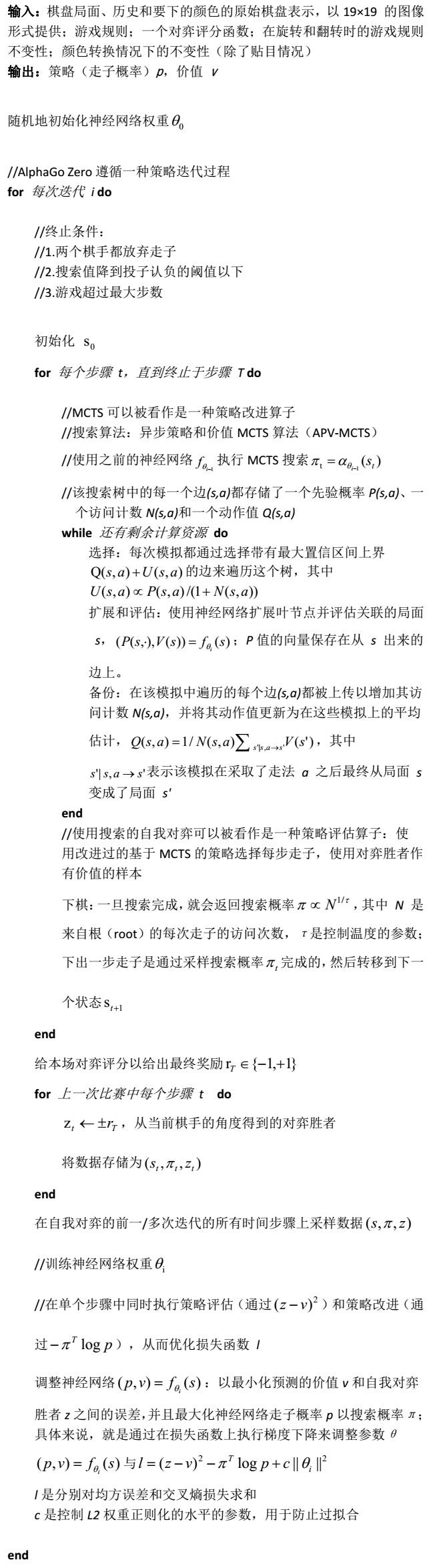 AlphaGo Zero 伪代码原版: