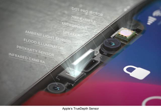 雷锋网此前曾报道,TrueDepth 采用结构光技术,将 30000 个激光点图案投射到用户的脸上,并测量失真以生成用于认证的精确 3D 图像。这种技术原本由以色列公司 PrimeSense 研发,后在 2013 年被苹果收购。PrimeSense 曾基于结构光技术为微软研发 Kinect 传感系统。
