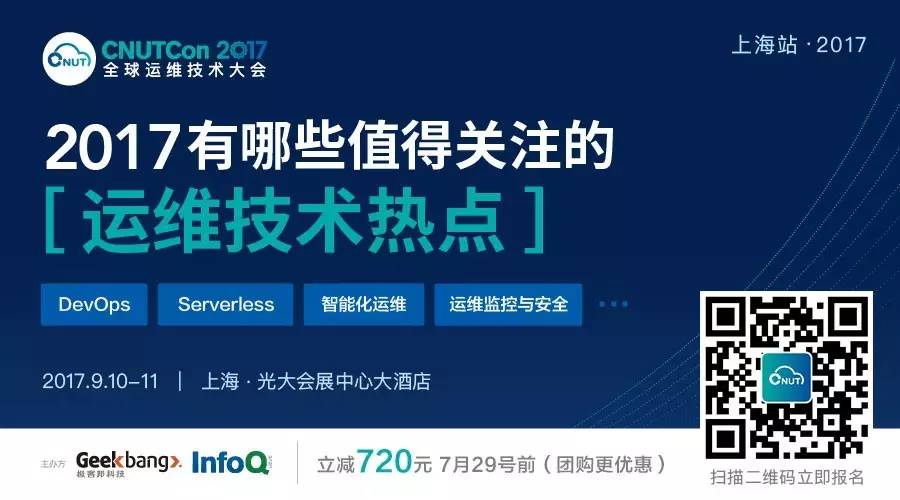 上述仅是此次 CNUTCon 全球运维技术大会上海站的部分案例,更多精彩可通过点击「 阅读原文 」查看,目前大会 8 折 报名倒计时进行中,本文的读者在报名时输入 CNUTCon2017-InfoQ-YOUHUI 还可享受特别优惠,数量有限,拿走不谢,欢迎报名锁定席位!购票咨询:18504256269
