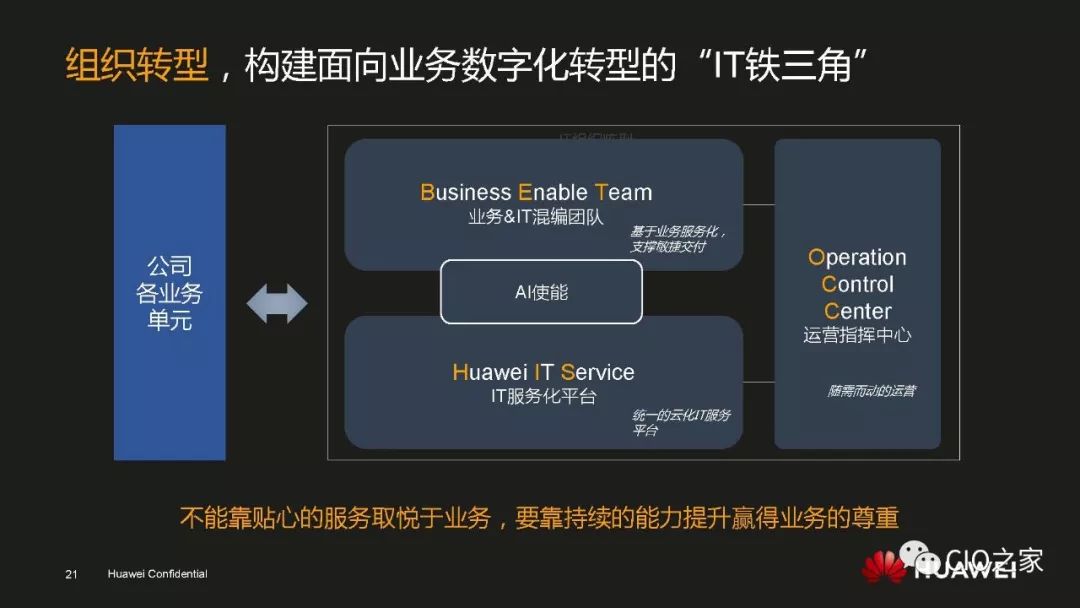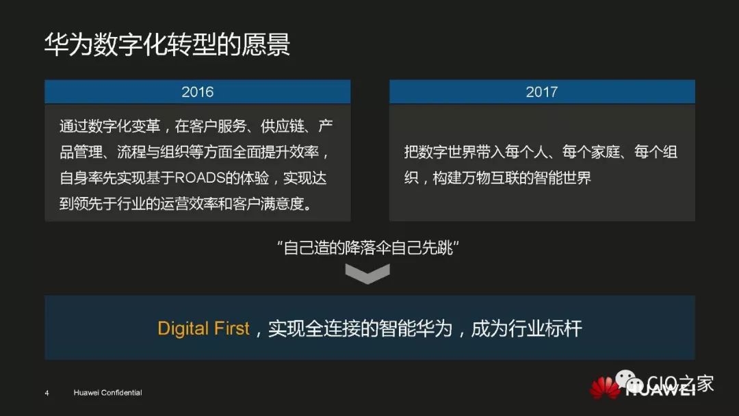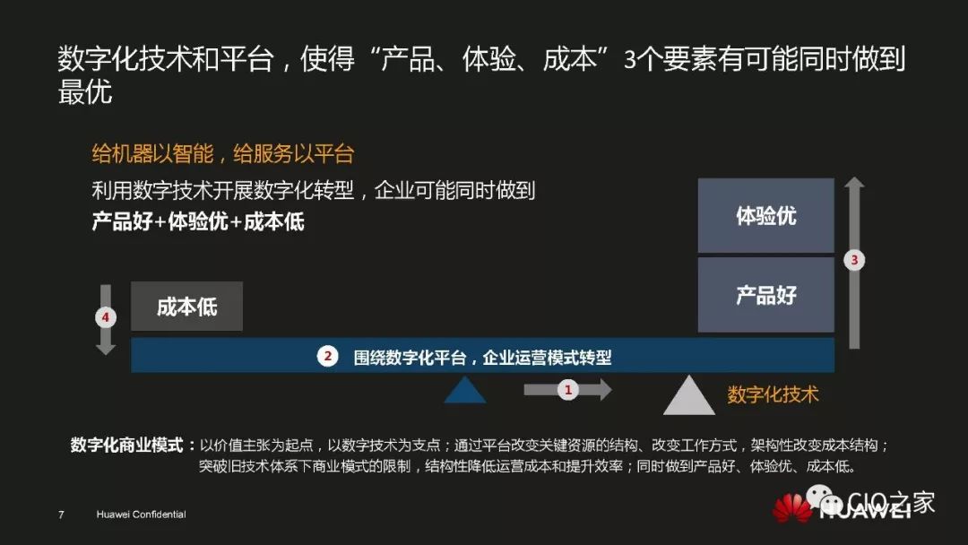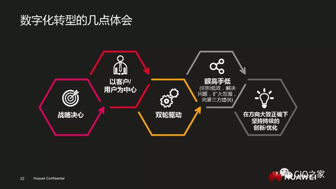 数字化转型成就今日华为数字化转型不仅提升了华为自身的IT能力,更帮助华为实现了自身管理和运营能力的升级。数字化转型需要顺势而为。华为数字化转型的核心就是以业务和技术双轮驱动,以客户和用户为中心,广泛引用先进技术改造流程。