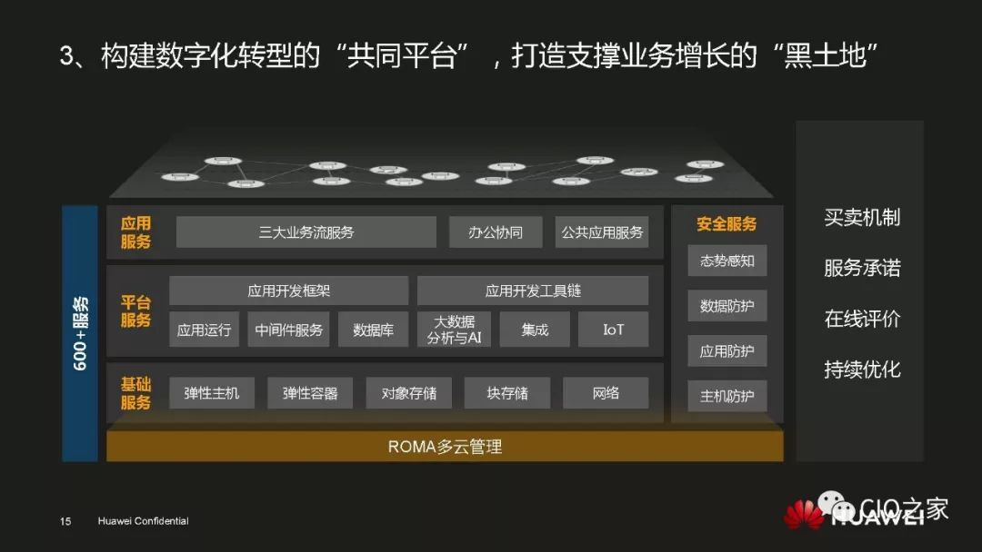 从企业的整体视角出发,单一技术是不可能解决所有问题的。作为信息系统的建设者,华为需要的是一个公共的服务平台。这个平台要提供安全数据和公共服务以及统一的基础设施架构,让华为可以根据自身的实际需求来平等地选择各类产品和服务。