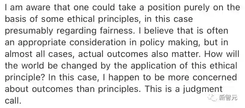 「但我们也要知道,实际成果同样重要。世界不能只靠道德原则运转,在这次事件中,比起虚无的原则,我更关心产生的实际后果,这是我的判断依据。」
