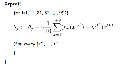 我们从上面两种梯度下降法可以看出,其各自均有优缺点,那么能不能在两种方法的性能之间取得一个折衷呢?既算法的训练过程比较快,而且也要保证最终参数训练的准确率,而这正是小批量梯度下降法(Mini-batch Gradient Descent,简称MBGD)的初衷。