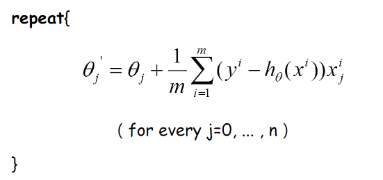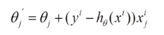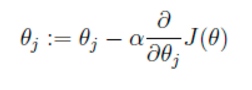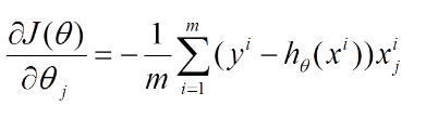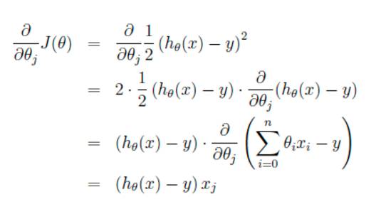 这里代表学习率,表示每次向着J最陡峭的方向迈步的大小。为了更新weights,我们需要求出函数J的偏导数。首先当我们只有一个数据点(x,y)的时候,J的偏导数是: