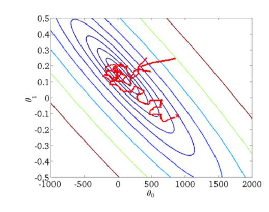 但是,SGD伴随的一个问题是噪音较BGD要多,使得SGD并不是每次迭代都向着整体最优化方向。