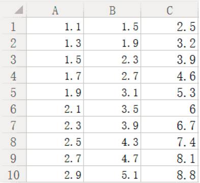 待训练数据A、B为自变量,C为因变量。
