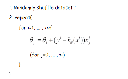 由于批梯度下降每跟新一个参数的时候,要用到所有的样本数,所以训练速度会随着样本数量的增加而变得非常缓慢。随机梯度下降正是为了解决这个办法而提出的。它是利用每个样本的损失函数对θ求偏导得到对应的梯度,来更新θ: