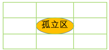 孤立区 从一个连通区域出发,可以找到该连通区域的水平外切矩形,将这个矩形中心对称 地向外扩张为原来的9倍(长、宽变为原来的3倍,如左图),扩展后的区域如果没有包含其他 的连通区域,那么原来的连通区域称为孤立区。