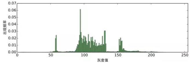 核密度估计 经过预处理的图像,我们可以对每个色阶的出现次数进行统计,得到如图5的频率分布直方图: