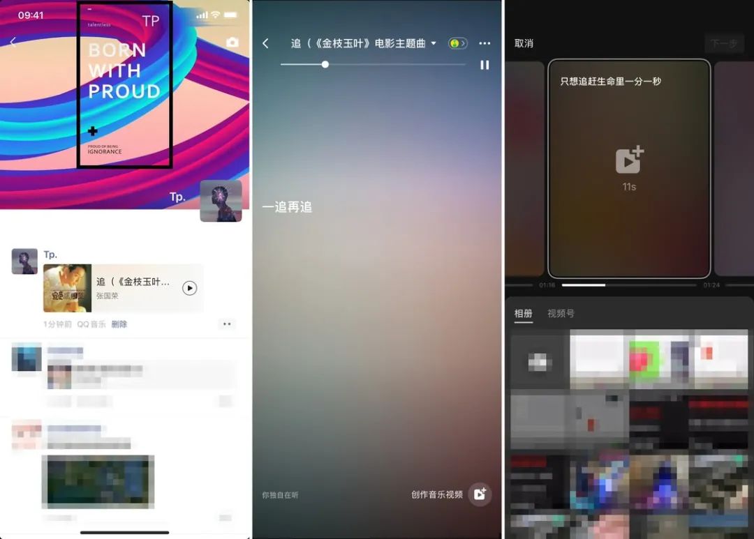 从 QQ 音乐分享的音乐界面改动,并且支持制作音乐视频。播放音乐时也有可能会播放别人制作的音乐视频。