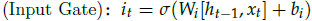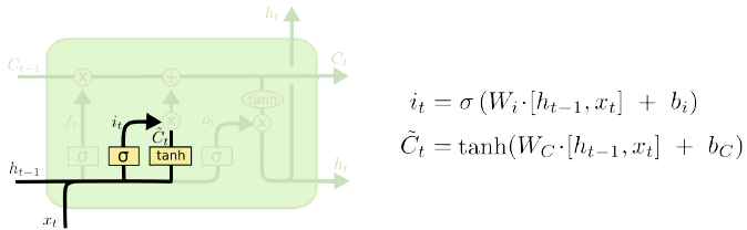 接下来LSTM 有一个输入门 ,它用来控制输入的信息多少可以进入LSTM。t 时刻的输入候选