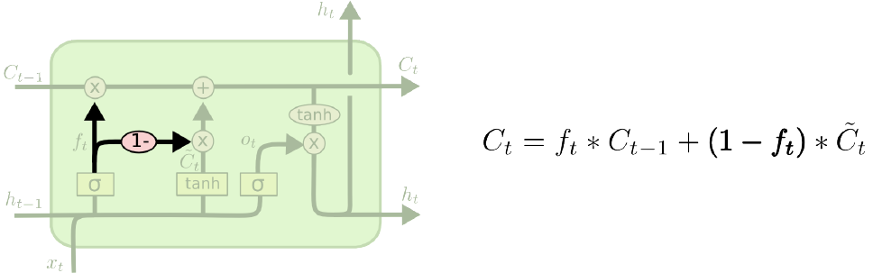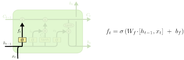 首先我们来了解 LSTM 的遗忘门(Forget Gate),它会决定遗忘多少之前的记忆。它的输入是上一个时刻的隐状态  和当前时刻的输入