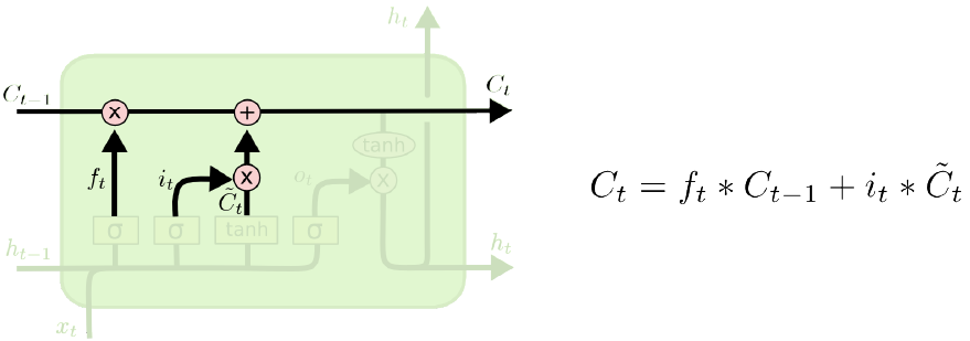 接着把上一个时刻未遗忘的信息  和当前时刻候选