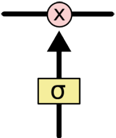 如图 5.10 所示,门可以用来控制信息是否能够通过,它一般是一个激活函数是sigmoid 的层,0 表示阻止任何信息通过,1 表示所有信息通过,而0-1 直接的值表示部分通过。