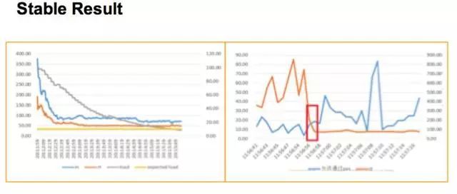 让我们来看一下最后取得的效果。用了新的算法之后,我们可以看到系统稳定在一定的范围之内,同时当问题机器恢复之后,流量也能够很快的恢复。