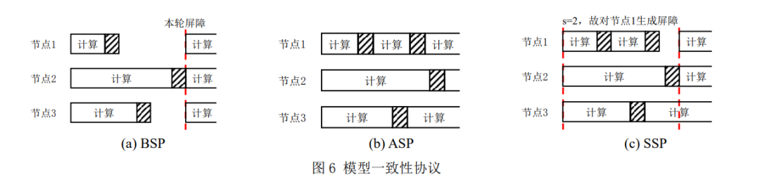 在大规模分布式机器学习训练场景中,计算 节点间需要频繁地进行参数同步,因此,参数同 步模式对整体训练性能具有重要的影响。本节将 从模型一致性协议和参数同步架构这两个方面详 细介绍对参数同步模式进行优化的相关工作。