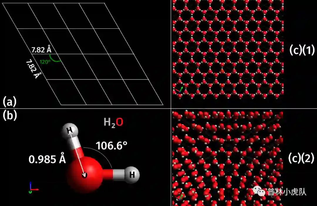 在冰的晶体结构里,我们可以看到六边形铺满平面的方式。每个六边形的顶点处是一个氧原子。