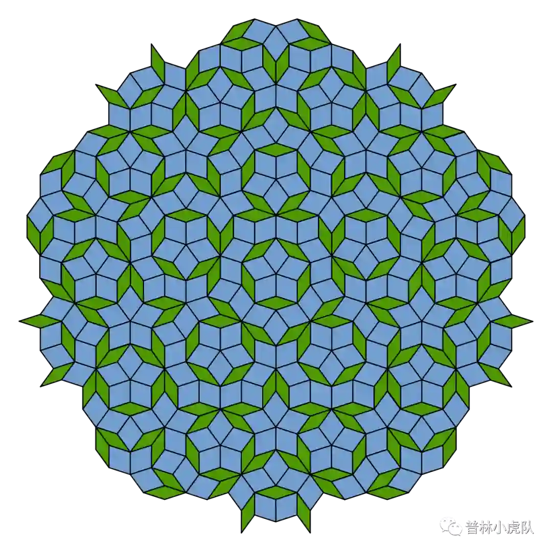 用这两种菱形可以造出无数个非周期性的铺法,比如下图。
