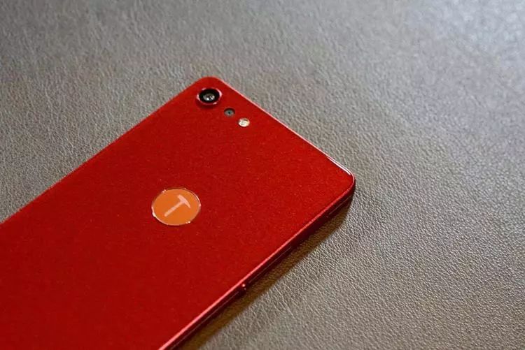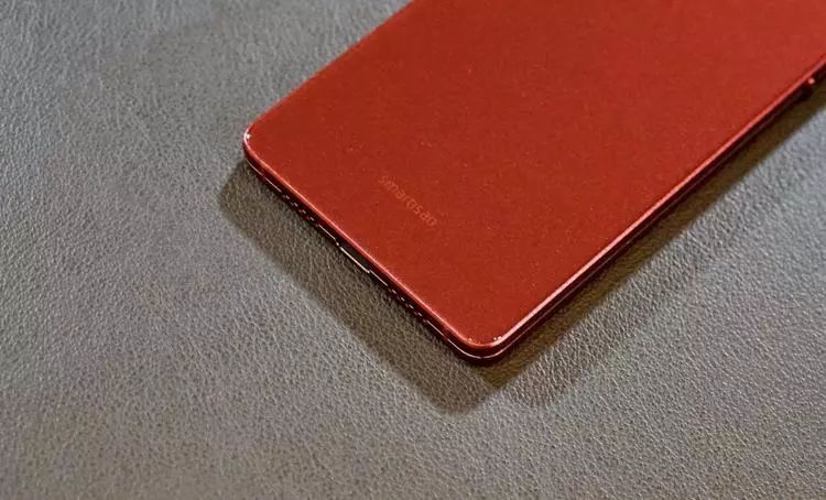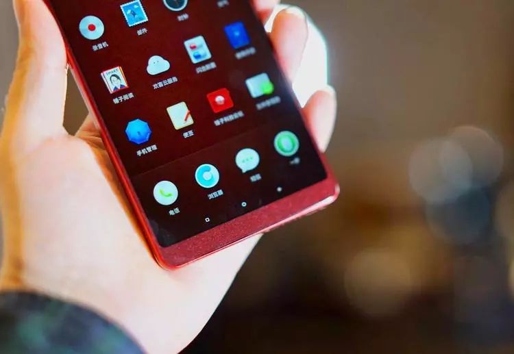 在白色和红色面板的坚果 Pro 2 上,只能在「额头」中间看到一颗前置摄像头,听筒、光线传感器、距离传感器全部都做了隐藏处理。