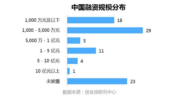 本周融资事件的融资规模主要集中在1000-5000万元,共29起。