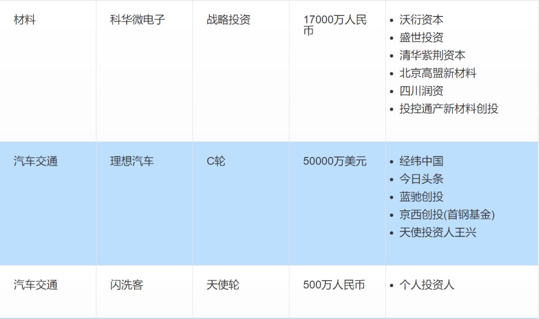 国内新造车企业理想汽车获5亿美元C轮融资;