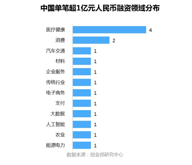 单笔融资额过亿的融资案例主要集中在医疗健康领域。