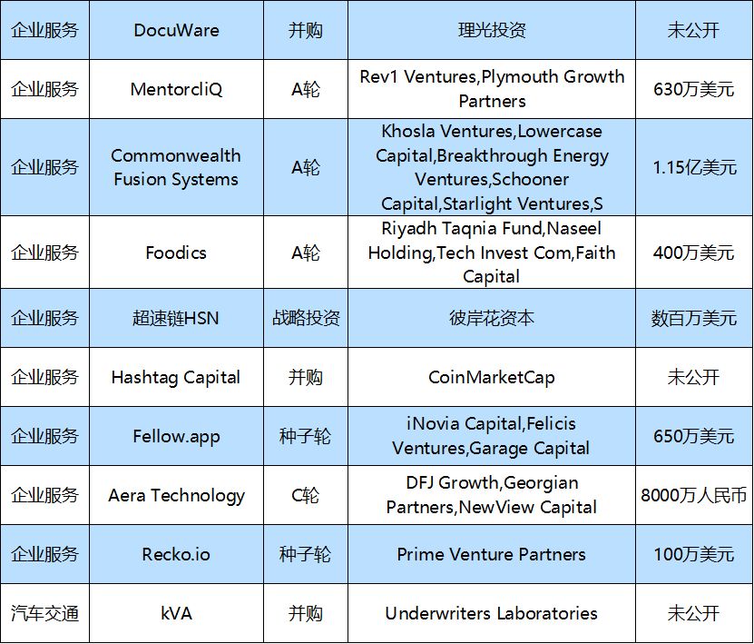 全球投融资周报(2019.6.14-6.20)丨自如B轮融资5亿美元,腾讯、红杉继续跟投;IDG资本领投微脉1亿美元融资