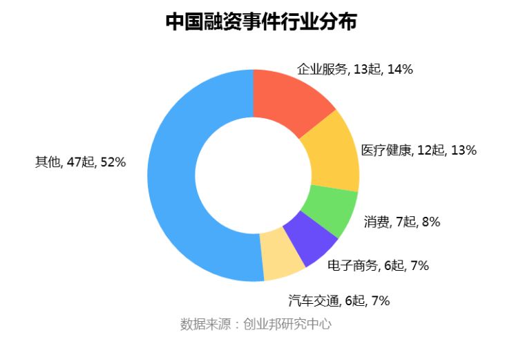 本周创投库监测国内融资事件共计91起。在已披露融资额的项目中,过亿元融资项目16起。以下从行业分布、融资阶段、融资规模、地域分布等方面具体分析。