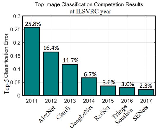 图 9:2011-2017 年之间,在 ILSVRC 竞赛的图像分类任务上获胜方法的表现
